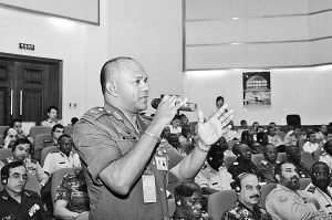 伊魯納貝爾·翁貝·迪克上校(尼日利亞):應(yīng)對(duì)非傳統(tǒng)安全威脅,軍隊(duì)面臨許多挑戰(zhàn),包括確定相應(yīng)的用兵等級(jí)、缺乏必要的訓(xùn)練、人力不足、缺乏統(tǒng)一行動(dòng)、不理想的媒體關(guān)系等。在國(guó)家一級(jí),應(yīng)制定和清晰闡述應(yīng)對(duì)非傳統(tǒng)安全威脅的戰(zhàn)略。軍隊(duì)被用以應(yīng)對(duì)非傳統(tǒng)安全威脅時(shí)應(yīng)當(dāng)使用少量必要的兵力,應(yīng)在國(guó)家安全的大局下行動(dòng)。把應(yīng)對(duì)非傳統(tǒng)安全威脅技能的訓(xùn)練放在軍隊(duì)訓(xùn)練中的重要地位。