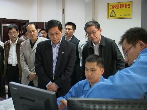 圖為孫華山、李躍了解航天科工安全生產(chǎn)傳感器工程。