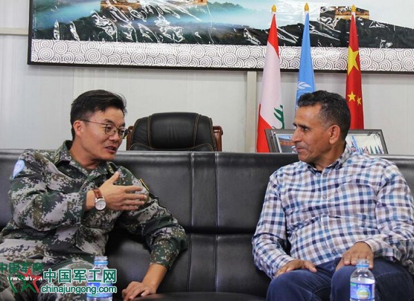 國第16批赴黎維和部隊指揮長黃云上校與聯(lián)合國核查人員交流。董永康 攝
