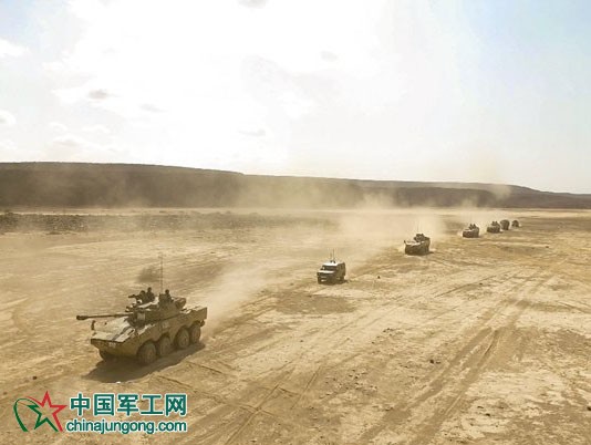 荒漠深處,炮聲轟轟。只見數輛輪式突擊車和步戰車一字排開,隨著指揮員一聲令下,數十發炮彈精準命中靶標。停止間射擊完成后,各型戰車又輪番展開運動中射擊訓練。此外,參訓官兵還與戰車一起開展協同作戰演練,穿插運用自動步槍、班用輕機槍、狙擊步槍、車載高射機槍和并列機槍位對目標實施打擊。