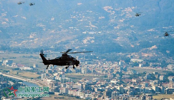 “低空突防抵近殲‘敵’。”直升機機組成員告訴記者,這是他們為增加訓練難度,在訓練中臨機增設的“敵情”。收悉指令,同一編組的數架各型直升機利用山谷、樹林等低空隱蔽物抵近目標,在崇山峻嶺間忽隱忽現、俯仰盤旋。突然,一架低空飛行的直升機快速仰頭拉起,完成躍升,對“敵”目標進行俯沖攻擊。