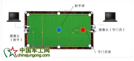 1,射手身份:射手身份時,球呈現(xiàn)紅色光。通過對攝像頭拍攝內容的分析,即時控制球的走向與速度,并力爭獲得進球。