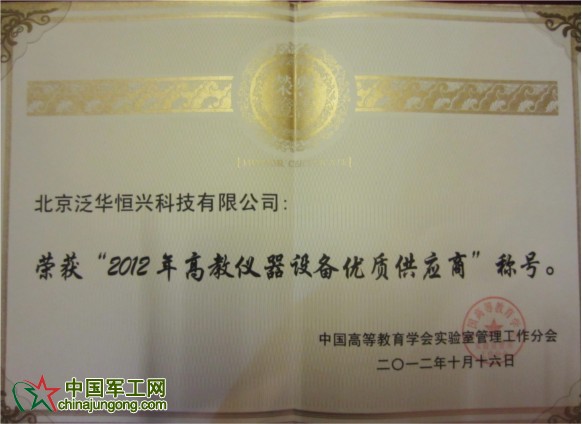 儀器設備優質供應商”評選活動在煙臺落幕,由中國高等教育學會、中國高等教育學會實驗室管理工作分會、中國教學儀器設備有限公司聯合主辦,北京泛華恒興科技有限公司(簡稱:泛華恒興)憑借其創新的產品和優質的服務榮獲“2012年高教儀器設備優質供應商”稱號。