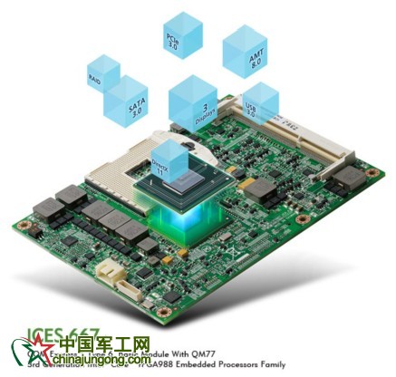 COM Express Type 6模塊ICES 667基于第三代Intel® Core™ 處理器,搭配移動式Intel® QM77 Express芯片組,參考載板ICEB 8060,內置4GB系統內存,預安裝Microsoft Windows® 7試用版, 可啟動mini-SATA或CFast-