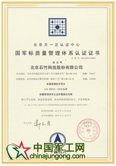 長(zhǎng)期以來,我公司以“質(zhì)量第一、顧客至上、持續(xù)改進(jìn)、精益求精”作為企業(yè)的質(zhì)量方針,不斷滿足用戶和市場(chǎng)對(duì)產(chǎn)品質(zhì)量不斷提升的需求。國(guó)軍標(biāo)質(zhì)量管理體系的認(rèn)證通過,進(jìn)一步提升了我公司的整體質(zhì)量管理水平,表明北京石竹科技已完全具備了軍品生產(chǎn)的質(zhì)量控制與保證能力。