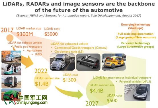 激光雷達、雷達以及圖像傳感器是未來汽車的支柱,圖片引自《汽車MEMS和傳感器市場及技術趨勢-2017版》
