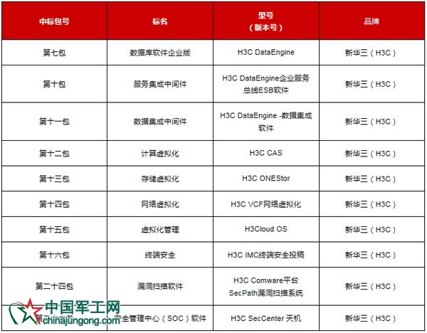 新華三本次中標產品信息如下: