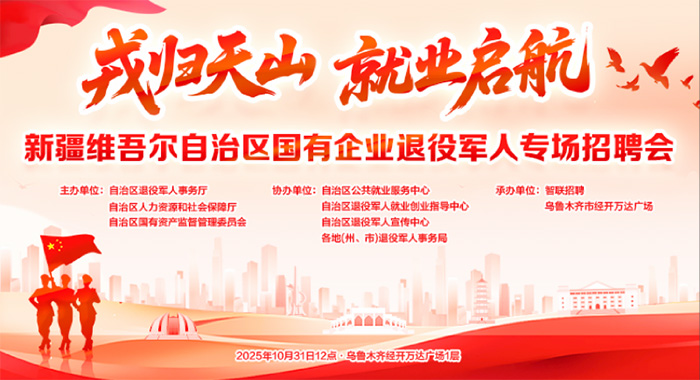 招聘會將于2025年10月31日上午12時在烏魯木齊市經開萬達廣場1層舉行,現場設置招聘區、政策咨詢區、就業指導區、直播帶崗區等。招聘會邀請了全疆各地(州、市)國有企業,將提供能源電力、房地產建筑、交通運輸、商貿物流、信息技術、互聯網科技、專業技術服務、制造業和旅游服務業等眾多優質崗位和靈活就業機會。