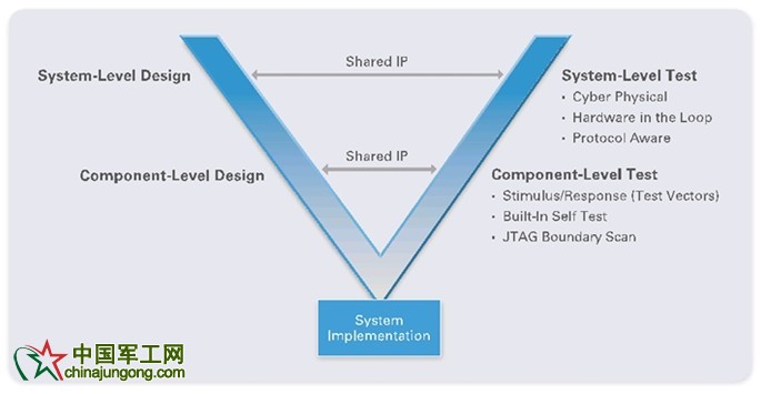 圖1. "V"框圖通常用于說明設計、實現和測試的理想流程。將通用系統設計語言用于跨越整個"V"流程可以最大化技能和算法重用,同時可以最小化轉換錯誤和查找修正周期數。