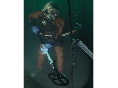 UWEX®725K采用脈沖感應模式,可避免金屬潛水儀器所帶來的干擾。可探測含鐵、不含鐵及合金物質。目標物體可以通過視頻或音頻信號報警。軍事上應用可采用靜音模式探測,這時紅色發光二極管將對目標物體做出反應。探測大型未爆爆炸物,如105mm的炮彈,炸彈或魚雷等,探測深度在2米左右,就需要使用尺寸為80×80cm大型搜尋探頭。