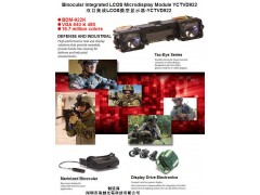 為因應現代軍事、工業、醫療、安防等在特殊環境中對視像的需要,YCTVD922-雙目集成LCOS微型顯示器以高集成特點幫助加快客戶基于微顯示技術的產品開發的目的而設計,集成并封裝有2個VGA像素的微顯示芯片、光源系統、高性能光學引擎、以及圖像驅動控制電路。該顯示模組可以虛擬出相當于3米遠處68英寸的畫面,圖像清晰(640H×480V)×RGB,922K(92萬)像素,AV接口和VGA接口,并可3D立體成像,體積小巧,可以方便快捷的應用到客戶的產品開發設計中。
