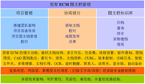 思智ECM除了是一套性價比極高的企業文檔管理及知識管理系統,也是一套面向設計過程的圖文檔管理軟件,思智ECM采用現代網絡技術為基礎,遵循國際領先設計企業的工作模式,整合設計及管理流程,為圖文檔管理需求的單位量身定做一套信息集成應用管理系統——思智ECM。系統采用 CAD 圖形預覽和批注技術,大幅提高圖文信息管理和協同設計的工作效率。