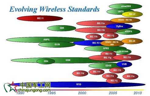 同時(shí),各種無(wú)線通信標(biāo)準(zhǔn)的不斷涌入也同樣使人感到束手無(wú)策,每個(gè)公司和組織都在根據(jù)自己特定應(yīng)用的需求來(lái)制定和優(yōu)化不同的標(biāo)準(zhǔn)和協(xié)議,這就使得大 量的新標(biāo)準(zhǔn)如雨后春筍般出現(xiàn),而每個(gè)標(biāo)準(zhǔn)的生命周期卻被大大的縮短。如果通過(guò)時(shí)間軸來(lái)顯示各種標(biāo)準(zhǔn),許多標(biāo)準(zhǔn)的演化過(guò)程會(huì)變得十分清晰,而新標(biāo)準(zhǔn)的開(kāi)發(fā)也 正以前所未有的速度進(jìn)行著。如下圖所示,在2000年之前,并存的標(biāo)準(zhǔn)只有四五種,并且生命力較長(zhǎng),到今天,這種情況已被層出不窮的各種標(biāo)準(zhǔn)所顛覆。