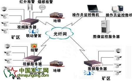 礦區監控前端包括模擬攝像機、視頻編碼器、網絡攝像機、報警輸入設備等。可以依據用戶及環境的不同需求,另外加配各種設備像防護罩等,前端設備將采集到的各種信號通過網絡傳輸到監控中心。